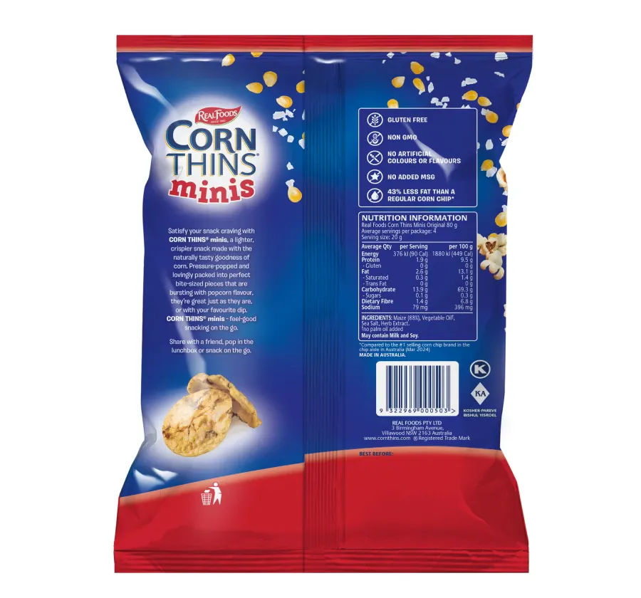 *Compared to the #1 selling corn chip in the chip aisle in Australia (Mar 2024)